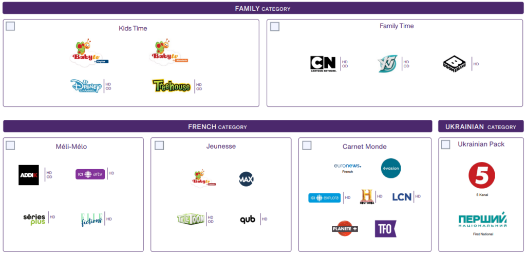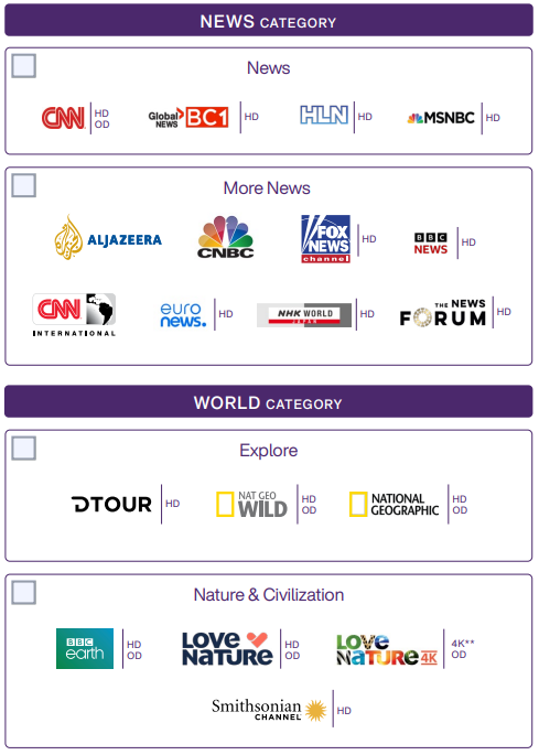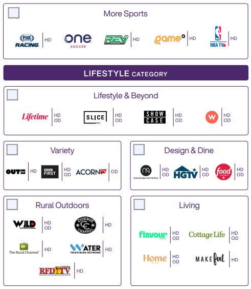 Choose from a selection of streaming services and themed channel packs tailored to your interests, such as news, sports, movies and more. You can also swap your theme pack selections every month online with My TELUS